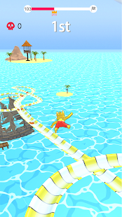 Aquapark.io is a new product just launched this summer. In such a short time, it has reached more than 10 million downloads on Google Play. This is a branded game by Voodoo. This is the reason why "aquapark.io" is so popular with many people. Good gameplay in combination with a reputable publisher quickly brings the product outstanding success. The contemporary gameplay is a factor that hits the psychology of the player. In addition, the image design of the game also makes a significant contribution to its success. The simple 3D graphics represent a huge water park that many players join. Like other products, Voodoo offers a game of many colors with a theme park in cool shades of blue. Besides, the characters who participated in the game are also well-crafted with symbols similar to Stickman but add many different colors through unique swimsuits. Your appearance can also be freely adjusted. If you have a lot of money and you buy yourself, a new look is definitely a perfect tool to express that style.