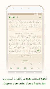 + Complete verse-by-verse recitation by selected reciters with full support for background playback, number of repetitions and sleep timer.