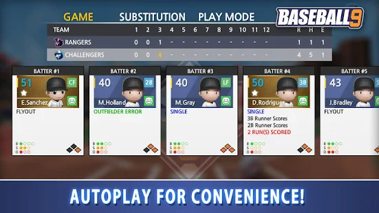 BASEBALL 9 - a cool, sporty baseball design with great graphics and player animation. There will be no big tabs and simulate bookmarks simulator or manager, just cool and addictive gameplay. The maximum that players demand - is his own team, which will give an opportunity to collect ideal candidates after leaving the stadium in full confidence of victory.