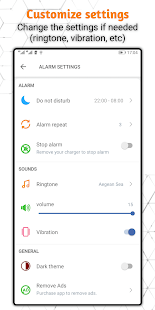 +ï¸ Set a custom alarm ringtone (in the app settings) or disable sounds for the alarm.