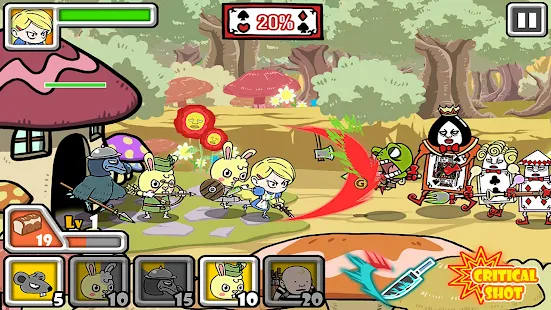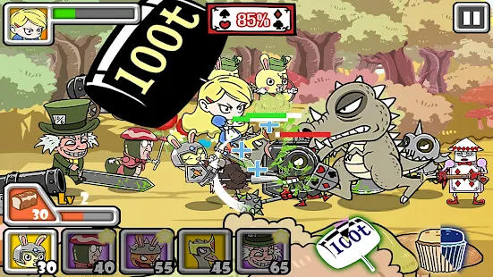 Bloody Alice Defense - a strategy that shows what would happen if Alice took the place of the mirror queen at all costs. Radical methods require brute force, and she has it in the form of a loyal army of soldiers with original looks and abilities. Training, leveling up and investing money will help make them perfect fighters to rival any Guardsman of the Crowned Base. And the armed protagonist at the top will boost morale in critical situations.