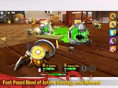 Every day while you're away, an epic battle of swords, guns and armor rages on your counters, on your floors and in your garden... Enter the world of Bug Heroes! From the creators of Monster Adventures and Heroes & Castles comes a new adventure that combines fast-paced action, strategy, and defensive gameplay! , a grenade-throwing worm, a poison-obsessed stink bug, and much more! Choose and customize your squad of two, then seamlessly switch between them as you unleash a variety of powerful abilities on your enemies. Search for food and junk, strengthen your base, build