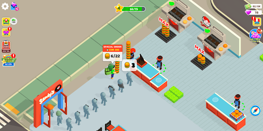 Start small with a humble counter and witness the growth of your burger empire. Expand your menu beyond fries and coke to include a variety of fast food options, such as pizza and more. Once you've successfully established your brand, it's time to take it to the next level. Open new branches and turn your burger shop into a global phenomenon. Become a master of the fast-food industry and spread your shops all over the world.