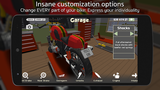 In addition, there are up to 4 game modes in Cafe Racer. Endless, Endless Two way, Time Trial and FreeRide. Each mode will have 4 different tracks such as Country plains, Death valley, City madness and Thunderstorm. At first, you only can race on Country plains. The different modes need to be unlocked by Cash. City madness will need 30000 Cash to unlock. But if you want to unlock Thunderstorm track, you need to have enough 60000 Cash. So earn a lot of CASH to be able to create the special motorcycles for yourself. The faster you ride, the faster your score will rise and the more you will earn Cash. When driving over 100 km/h, close overtakes will yield extra bonus points. And don’t forget to get your daily rewards from Main Menu. They will help you to increase your amount of Cash.