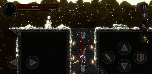 Play as a medieval warrior starting a journey with a sword across a fallen kingdom in a pixel 2d rpg platform indie game with retro art. In this journey you can see the beauty of this kingdom with sunny, snowy and rainy times with stylized pixel graphics. Many different places with different weather conditions will simply please your eye with their beauty. Some levels in this journey can be difficult to complete with just a sword. To get through the levels you have to defeat enemy warriors with your sword and collect more XP points to improve your skills and unlock magic abilities. To pump your warrior with skills you can kill warriors, wolves, monsters and even giants. You can find chests with gems in some places and sell gems to merchants and earn silver coins. Some chests are hidden and you have to discover them yourself. You can also find gems by killing some warriors. With silver coins, you can buy food for healing and various poisons to gain various abilities for a short time. To kill tough warriors, sometimes you need to use poisons to gain additional skills. There are so many unique abilities you can gain with poisons. Some poisons can slow down time and even some poisons can make you invisible.