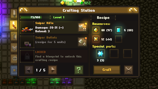 * Find resources and create unique and powerful items in a crafting station in your base