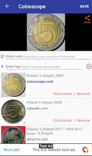 Descriptions : Coinoscope makes it easy to identify coins. Just take a picture of a coin with your phone camera and the app will show you a list of similar coins. Click the coin to view additional information in your phone's web browser. Save search results and build your photo collection with coins. A must for every coin collector and numismatist!