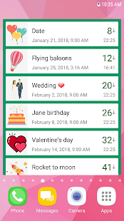 Descriptions : Countdown Days App and the daily widget count the days, hours and minutes until your special event. You can add as many events as you want with our free countdown app. The app has a nice home screen widget, countdown calendar, reminders, and mail and call notifications for all of your upcoming events.