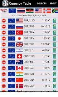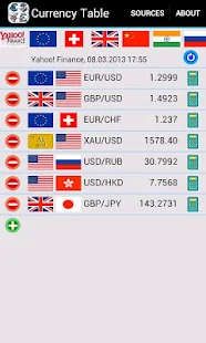 Descriptions : The table shows the exchange rates for max. 15 selected currency pairs. To add a currency pair, press the plus button to remove a currency pair - the minus button. To replace a currency pair, click on one of the flags.