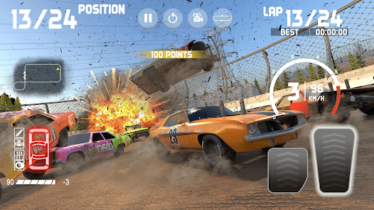 Demolition Derby Car Games (MOD, Unlimited Coins) - a series of racing action games in which you get the opportunity to get behind the wheel of the assembled car to take part in dynamic and exciting races on city streets, and your main task will be be the first to reach the finish line, and the complete lack of rules allows you to make the best tactical decisions right during the race. Overtake, cut, push, do anything to overtake your opponents. Demolition Derby 3 mod apk is the third part of the series, which is a kind of gameplay supplement to the previous parts, with updated graphics, new locations and more ways to improve and customize cars.