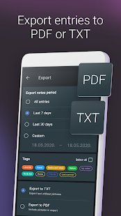 + Export and Print - Export TXT or PDF and print your notebook anytime with a mood tracker and photos.