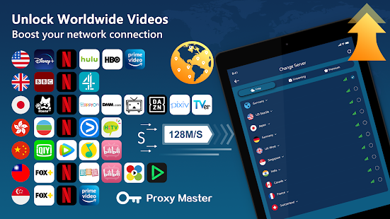 Proxy Master - A free, fast and secure VPN trusted by over 10,000,000 users, to help you protect online privacy, secure WiFi hotspot, access blocked websites / apps, watch videos (streaming content / movies / sports shows / any other program), speed up games and bypass firewalls.