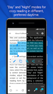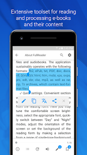 Descriptions : FullReader is a multifunctional e-book reader app. It is suitable for opening PDF and DjVu files, magazines, comics, listening to audio books and working with documents on smartphones and tablets.
