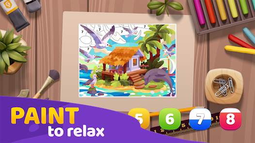 Gallery: Coloring Book & Decor - unusual arcade puzzle game with unique gameplay. In it, the player helps the main character to furnish a dilapidated house and turn its interior into a work of art. To repair the premises of the house, the user needs stars, which allow you to buy various items. To get stars you have to go through the coloring pages. To fill pictures with paint, players need to choose the shade according to the number and apply the paint to the canvas. The coloring process gives the sea of ​​​​positive emotions and keeps you in a good mood all day long.