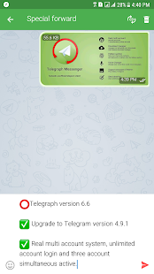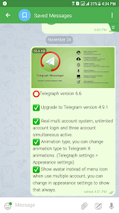 Descriptions : Graph Messenger is a UNOFFICIAL messaging app that uses Telegram's API and adds new features like a real multi-account system, a download manager and a timeline.