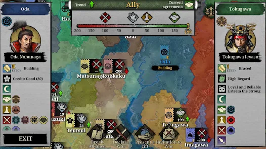 Engage in both open strife and veiled struggles between daimyos and factions. Elements such as retainers groups, subordinate states, prestige, personality, and attitude will influence the tides of war. Employ diplomatic strategies such as gifts, agreements, and war declarations to gain insights into the complex web of alliances and conflicts. Your choices in diplomacy and conquest will determine the fate of your clan in this era of war and diplomacy.