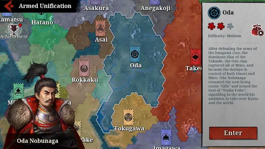 Immerse yourself in 16 chapters featuring over 200 well-known ancient military battles. Experience historical events such as the "Battle of Okehazam," "Mino Campaign," and "Armed Unification" as you navigate the complexities of the Sengoku period. The game meticulously recreates the chaos and challenges of the time, offering a blend of conquest scenarios and historical battles that shape the destiny of your clan.