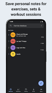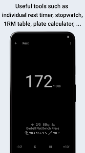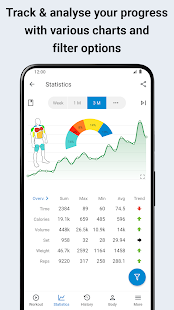 + Statistics, diagrams and session reports (1RM, training volume, calories, rest)
