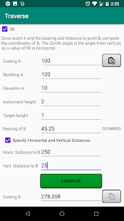 Descriptions : Developed in consultation with experienced surveyors in Australia and the United States, this app includes many of the common Coordinate Geometry (COGO) calculations required for field surveying.