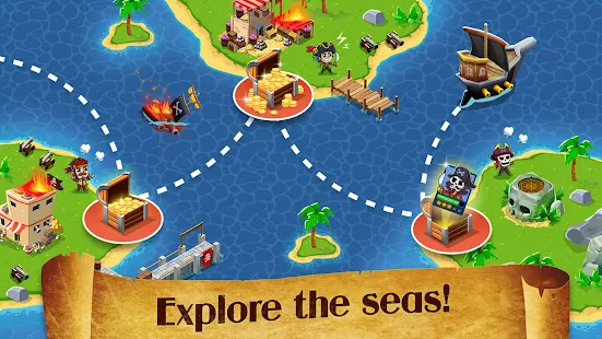 As your power grows, you will discover new looting routes with more lucrative loot. Hire captains to manage your pirate ships and earn gold even when you're not playing! This is both an online and offline idle game, but don't worry, your captains will take good care of the loot they find while sailing. Tap to explore new lands and fight against other pirate ships for the best loot.