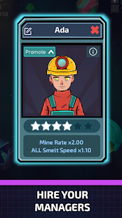 * Mine: Earn coins and hire managers to help your mining company