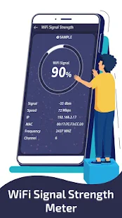 + The WiFi signal strength meter helps you to display your current WiFi signal strength and see the WiFi signal strength in your area in real time.