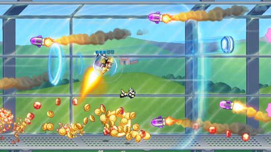 In Jetpack Joyride you are the legendary hero named Barry Steakfries (not Barry Allen). Barry just broke into a high-tech lab to steal the jetpack machine - a jet engine. Oh no, he was just discovered. Use the machine you just stole to escape the lab.
