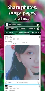 Share songs, photos, websites, comments or the status you want with your friends as a social network app.