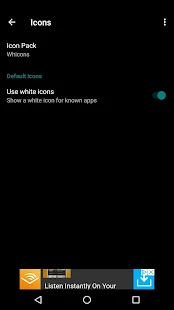 + Select this option to show white icons (for known apps) or system / icon pack icons