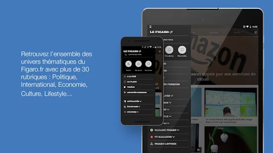 Descriptions : Follow the news live and find all the news in France and abroad, but also economic and political news with the new application Le Figaro.fr! More and more of you are reading the news on Android smartphones and tablets. That is why we have developed a brand new application containing information to better meet your expectations and developing a specific treatment of the messages for mobile phones.