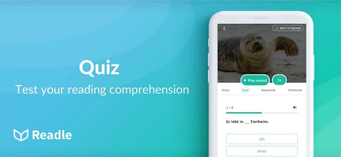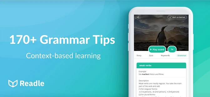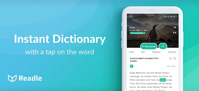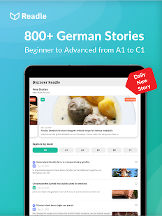 Descriptions : Readle is a unique and effective German learning app. Learn German in context with more than 800 simple and entertaining stories at your level. Build your German vocabulary with smart flashcards based on topics you enjoy the most. Filter stories for your individual level from A1, A2, B1, B2 to C1 and choose topics you enjoy reading. Forget that you are learning German right away. Do the vocabulary training with smart flashcards on an interval repetition system + add German words you want to learn from your favorite stories and transfer them to your long-term memory. Over 170 German grammar aids along the stories will help you understand the most difficult part of the German language with ease. Work your way up quickly from A1 beginner to intermediate C1 native speaker level. Quickly expand your German vocabulary for TestDaF, Goethe Certificate or everyday conversational vocabulary. Listen to recordings by native German speakers, a perfect way to practice your German listening skills.