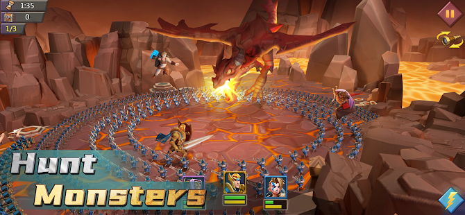Plunge into the mythical world of magical creatures and powerful heroes. Lead them in battles with the wild monsters and ruthless enemies. Win against them as you strive to create a powerful kingdom.