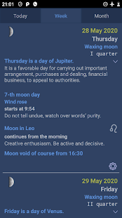 + Notifications for the transition of the moon to the next zodiac sign or at the beginning of a new lunar day