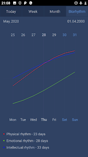 + personalized biorhythm calendar for calculating your physical, emotional and intellectual rhythms according to your date of birth
