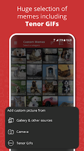 + Custom meme support allows any picture from your device to be used