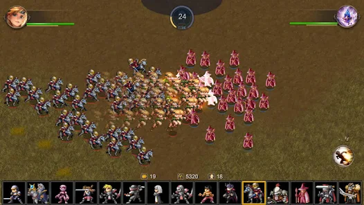 Miragine War - a strategy game in a medieval setting with exciting battles between the two powers. Using the available combat units, the player fights with the enemy's armies in open spaces. In order to achieve victory, the commander should monitor the progress of the battle and time to produce a certain type of soldiers. Each character class has its own offensive and defensive abilities: more powerful soldiers for defensive builds, while the light, maneuverable characters are more suited to the offensive. There are also battle mages, spells that build up particularly strong damage to opponents.