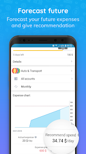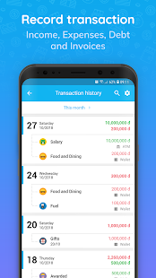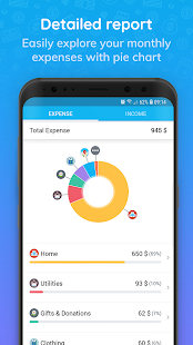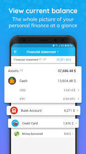 + Quickly review your personal financial statements by day, month, income / expenses or debt / loan