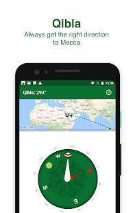 + Animated Qibla compass and map to indicate direction to Mecca