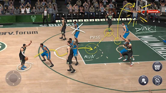 Control in NBA LIVE Mobile Basketball is quite simple, in which the console consists of only 4 function keys: move (D-Pad), Pass, Shoot, Hold Sprint. The D-Pad button is at the bottom left of the screen, where you control your character’s movement. The remaining three keys are on the right side, divided into two types of skills: attack and defense. Attacks include Pass (over people), Hold Sprint (sprint), and Shoot (throw the ball in the basket). The defense has the function of protecting the ball and blocking an opponent. Tutorials will explain how these actions work and how to perform them.