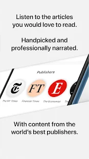 Descriptions : Incorporate journalism with Noa in your life - this is the world's largest collection of audio journalism. The New York Times, the Financial Times, the Economist, and more. Each audio article is expertly curated by our editors and brought to life by our team of professional storytellers.