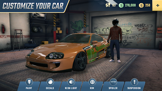 You have access to a plethora of different personalization options. You can improve the performance of the engine, brakes, transmission, exhaust system and drive train! Listen to the authentic sounds of the machine and take your vehicle's performance to the next level by tuning it.