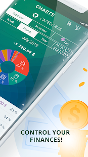 + Analyze your expenses and income with the help of user-friendly charts.
