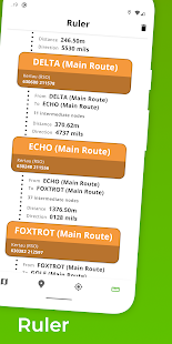 + Add routes and areas to measure distances and straight-line directions between each control point.