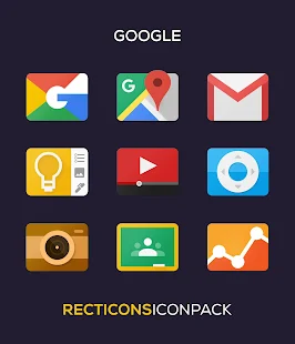 Descriptions : Complete your mobile screen with exclusive icons with a rectangular appearance. Each icon is a real masterpiece and has been designed to create a perfect and purely professional look. The Recticons Icon Pack has been designed with a perfect blend of creativity and simplicity to enhance your mobile experience.
