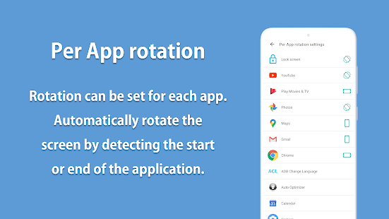 + Detects when chargers or headphones are connected and rotates to your preset screen orientation.