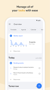 Writing down homework, assignments, exams and reminders is easy and fast, and daily notifications will help you not forget anything. The built-in calendar is highly optimized for student needs and allows you to manage your events and activities more easily.