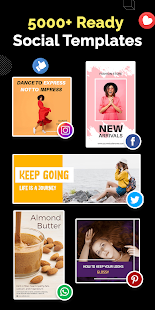 The social media post maker app offers editable design templates for Instagram posts, Facebook posts, Instagram stories, the cover photo for various social media profiles, banner and thumbnail makers for YouTube, album covers, blog images and more.
