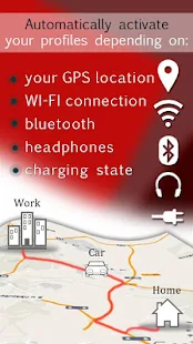+ Let other automation apps (such as Tasker, AutomateIt, Macrodroid ...) activate the profiles created in SoundProfile.