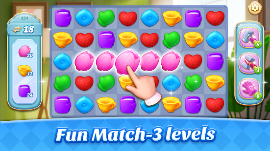 * Design and decorate each house based on shape match 3 to earn more money to buy more items.