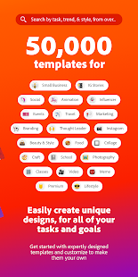 Descriptions : Get started in seconds with professionally designed templates that you can customize with just a few taps to create your own. Pick your images, add text to photos, and apply design filters to create stunning thumb-free graphics in no time. Discover new layouts, color palettes, typography styles or filters with a single tap. Promote your work and brand online and create flyers, ads, collages and invitations for free. Easily share your designs to delight your followers. Add flair to social media posts and enhance your Instagram stories with videos.